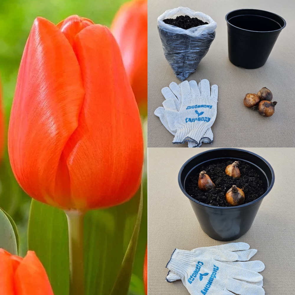 - 3 луковицы тюльпана сорта Orange Sherpa